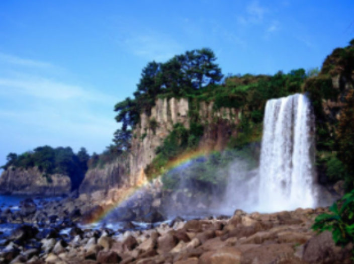 제주도 아이들과 가볼만한곳 어린이날 여행지 볼거리 나들이 추천 여덟 번째, 정방폭포는 천제연폭포, 천지연폭포와 더불어 제주도 3대 폭포라고 불린다. 높이 23m, 너비 8m에 깊이 5m에 달하며, 국내에선 유일한 뭍에서 바다로 직접 떨어지는 폭포이다.