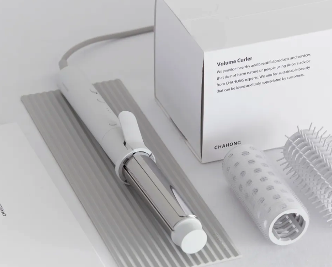 헤어스타일러 드라이기 브랜드 제품 종류 추천 베스트 세 번째, 모발 관리 브랜드 차홍은 헤어 스타일링 디바이스 '차홍 볼륨 컬러'를 공급하고 있다. 티타늄 특수 코팅된 바렐 아이론에 벨크로 볼륨 롤, 볼륨 브러시를 탈착하는 3in1 형식의 제품이다.