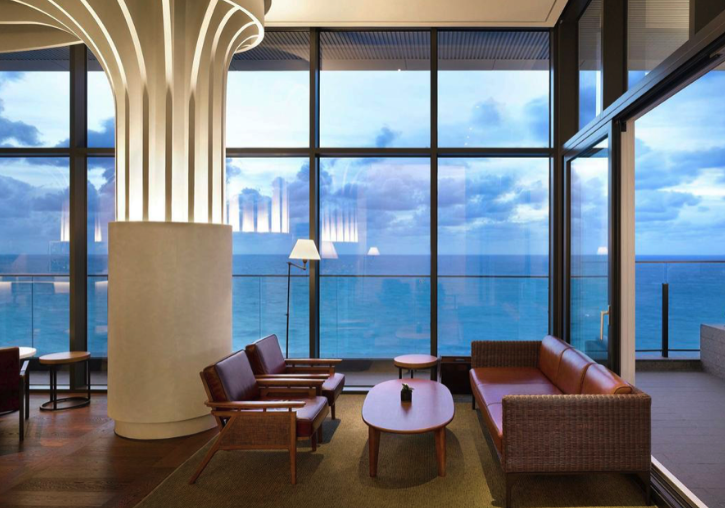 여름 휴가 가족 여행지 오션뷰 호텔 리조트 핫플 숙소 추천 다섯 번째, 울산 북구 강동산하지구에 있는 머큐어 앰배서더 또한 전 객실이 바다 전망으로, 정자 몽돌해변과 정자항이 한눈에 들어오는 위치에 자리를 잡고 있는 숙소다. 지상 34층, 지하 4층 규모로, 슈페리어, 스위트, 프리빌리지 등 총 131개의 객실을 보유하고 있다. 호텔의 인테리어에는 세계적인 건축가 메리엄 홀이 참여했으며, 호텔 내부에서는 멋스러운 ‘갓’ 디자인과 예술품 전시 공간을 볼 수 있다.