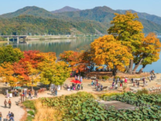 수도권 단풍 명소 가을 여행지 갈만한곳 추천 네 번째, 남이섬이라는 지명은 남이섬 북쪽의 언덕 돌무더기에 남이 장군이 묻혔었다는 민간전승에 따라 자연스럽게 정착되었다. 1944년 청평댐 건설로 북한강 수위가 높아져서 섬이 되었고, 1965년 수재 민병도 선생이 토지를 매입을 하고 모래땅에 다양한 나무를 꾸준히 심어서 지금처럼 아름다운 남이섬을 만들었다.