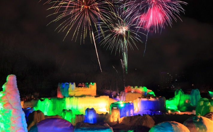 홋카이도 대표 여행지인 삿포로에서는 연간 200만 명 이상이 찾는 눈 축제가 열려 눈과 얼음으로 만든 조각상과 밤하늘을 수놓은 색색의 불빛이 거리를 장식한다.