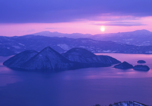 일본 삿포로 겨울 여행 코스 투어 가볼만한곳 추천 첫 번째, 도야코는 화산으로 인해 생긴 호수다. 그 길이는 동서로 약 11킬로미터, 남서로 약 9킬로미터나 되며 원형에 가까운 형태를 띠고 있다.