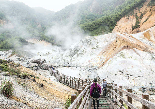 일본 삿포로 겨울 여행 코스 투어 가볼만한곳 추천 세 번째, 지고쿠다니(지옥의 계곡)는 넓은 폭열화구군이다. 부글부글 끓는 온천이 마치 지옥을 연상케 한다는 데에서 유래한 이름이다. 산책로를 걸으며 가만히 귀를 기울여보면 뜨거운 온천이 용출하는 소리가 들린다. 자연의 강인함을 직접 체험해 보기 바란다.