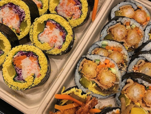 더현대서울 맛집 먹거리 리스트 인기 식당 순위 추천 일곱 번째, 앞산분식은 키토김밥, 에비산도, 국물 떡볶이 등 다양한 종류의 메뉴를 맛볼 수 있는 곳이다. 통통한 새우살이 가득한 에비산도, 밥 대신 지단이 가득 들어가며 속편하게 부담없이 즐기는 키토김밥 등 다양하게 즐길 수 있다.