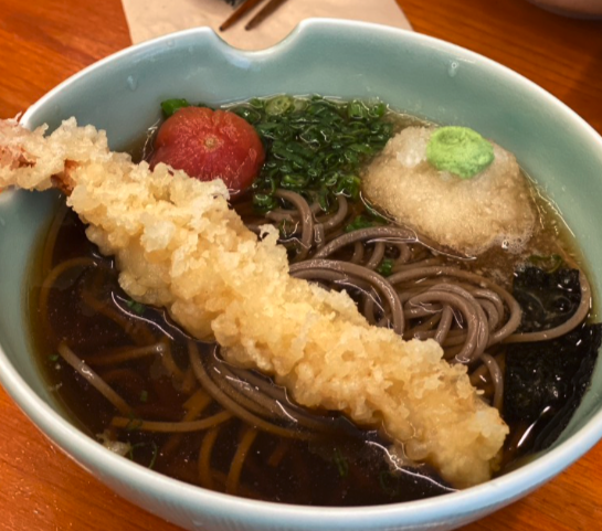 소바에 올라가는 토핑은 약 10가지가 마련되어 있어 취향에 맞게 골라 즐기면 된다. 그 중 갓 튀겨 나와 바삭한 새우튀김과 바다의 짙은 풍미를 담아낸 성게알이 가장 인기이다.