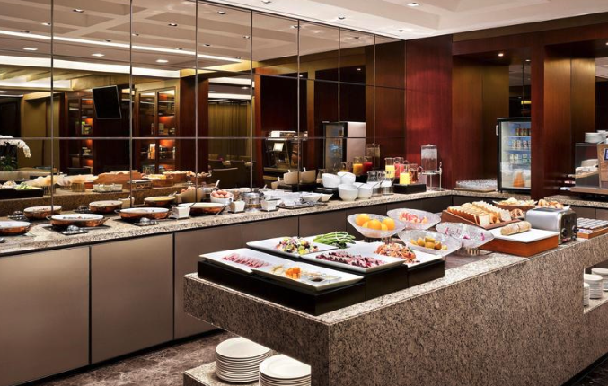 호텔에는 중식, 일식, 한식, 프렌치, 뷔페 등 다양한 메뉴를 선보이는 5개의 레스토랑이 있어 식사 선택의 폭이 넓으며, 라운지&바 더 라이브러리에서는 다양한 음료 및 주류, 애프터눈 티 등을 즐길 수 있다. 매일 아침 조식 뷔페는 1층 파크뷰에서 제공하고 있다.