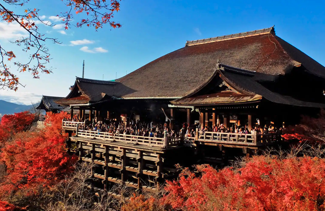 유네스코 세계문화유산에 지정된 기요미즈데라는 일본에서 가장 유명한 사찰로 손꼽히는데, 지상 13m 위에 세워져 본당과 이어지는 목조 단이 특히 유명하다.