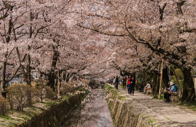 일본 교토 가볼만한곳 인기 관광지 여행 코스 추천 여덟 번째, 풍경이 아름다운 철학의 길은 유명한 교토 대학의 교수이자 철학자인 니시다 기타로가 건강과 사색을 위해 매일 산책했던 길이다. 그 때문에 이런 이름이 붙었다. 철학의 길은 운하를 따라 벚나무가 심어진 길을 따라 나 있다.