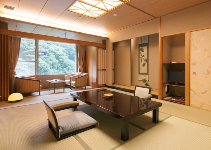일본 고베 아리마 온천 여행 료칸 호텔 숙소 추천 세 번째, 아리마 온센 겟코엔 고로칸에서는 사우나 및 미네랄 바스 등을 이용할 수 있다. 가족 여행객이나 단체 여행객을 위해 여러 개의 연결된 객실을 제공하고 있다.