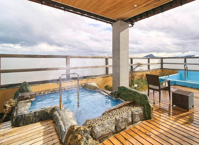 개별 노천탕에서 프라이빗하게 온천욕을 즐길 수 있는 숙소로는 어떤 곳으로는 하코네 아시노코 하나오리, 유후인 호테이야, 벳푸 간나와엔, 교토 오하라 료칸 세료, 유후인 코토부키 하나노쇼, 유후인 료칸 세이코엔이 있다.