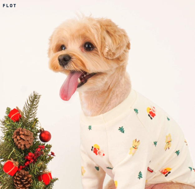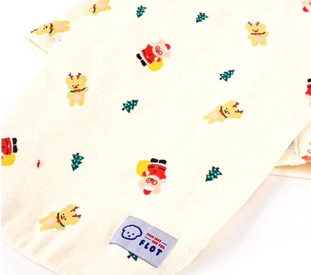 강아지 크리스마스 옷 애견 산타옷 겨울 연말 파티 선물 제품 브랜드 종류 추천 네 번째, 플로트 크리스마스 티셔츠 강아지옷 아이보리는 귀여운 크리스마스 패턴이 아이보리 색 원단에 프린팅되었다.