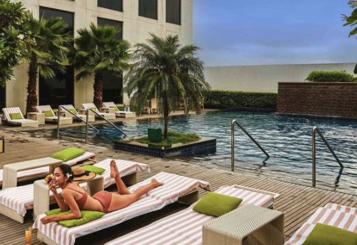 여름 방학 휴가 인도 여행 뉴델리 위치 좋은 호텔 숙소 추천 여섯 번째, 풀먼 뉴 델리 에어로시티 언 아코르호텔 브랜드는 인디라 간디 국제공항까지 바로 연결되어 있으며, 내부에는 거품 욕조 등이 마련되어 있다.