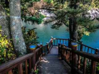 제주도 가볼만한곳 10곳 일곱 번째! 쇠소깍은 한라산에서 흘러내려온 물줄기가 제주도 남쪽으로 흐른다는 효돈천의 끝자락에 위치하고 있다. 효돈천의 담수와 해수가 만나 생긴 깊은 웅덩이가 바로 쇠소깍이다. '쇠소'는 '소가 누워 있는 모습의 연못'을 '깍'은 '마지막 끝'을 의미한다. 쇠소깍은 양벽에 기암괴석이 병풍처럼 둘러서 있고, 그 위로 숲이 우거져 신비한 계곡에 온 기분을 느낄 수 있다.